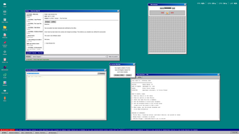 Fully simulated Windows 98 desktop with draggable, stackable windows